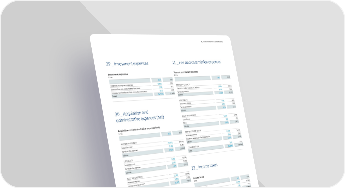 D _ Consolidated Financial Statements 29 _ Investment expenses 31 _ Fee and commission expenses Investment expenses Fee and commission expenses € mn € mn 2021 2020 2021 2020 Investment management expenses (1,019) (905) Expenses from real estate held for investment (630) (447) PROPERTY-CASUALTY Expenses from fixed assets from alternative investments (314) (288) Fees from credit and assistance business (1,546) (1,242) Total (1,962) (1,640) Service agreements (409) (375) Subtotal (1,955) (1,617) LIFE/HEALTH Investment advisory (726) (605) 30 _ Acquisition and Service agreements (192) (108) Subtotal (919) (712) administrative expenses (net) ASSET MANAGEMENT Commissions (2,189) (1,794) Acquisition and administrative expenses (net) Other (10) (38) € mn Subtotal (2,199) (1,833) 2021 2020 CORPORATE AND OTHER Service agreements (2,209) (1,931) PROPERTY-CASUALTY Investment advisory and banking activities (410) (353) 1 Acquisition costs (10,583) (10,359) Subtotal (2,619) (2,284) Administrative expenses (3,686) (3,487) Subtotal (14,269) (13,846) CONSOLIDATION 2,693 2,421 Total (5,000) (4,024) LIFE/HEALTH Acquisition costs (5,208) (5,144) Administrative expenses (2,100) (1,898) Subtotal (7,307) (7,042) ASSET MANAGEMENT 32 _ Income taxes Personnel expenses (3,149) (2,805) Non-personnel expenses2,3 (5,458) (1,696) Subtotal (8,607) (4,501) Income taxes € mn CORPORATE AND OTHER 2021 2020 Administrative expenses (1,206) (1,221) Current income taxes (3,636) (2,264) Subtotal (1,206) (1,221) Deferred income taxes 1,221 (207) Total (2,415) (2,471) CONSOLIDATION (33) (35) Total (31,422) (26,644) 1_Include € 1,043 mn (2020: € 904 mn) ceded acquisition costs. 2_Include € 102 mn (2020: € 57 mn) changes in assets and € (102) mn (2020: € (57) mn) changes in liabilities related to certain deferred compensation programs, entirely offsetting each other. 3_Include € (3,687) mn expenses for a litigation provision for Structured Alpha. For further information, please refer to During the year ended 31 December 2021, current income taxes note 37. included expenses of € 10 mn (2020: € 55 mn) related to prior years, deferred income taxes included income of € 3 mn (2020: € 18 mn) related to prior years. Of the deferred income taxes for the year ended 31 December 2021, income of € 1,385 mn (2020: expenses of € 70 mn) is attributable to the recognition of deferred taxes on temporary differences, and expenses of € 156 mn (2020: € 129 mn) are attributable to tax losses carried forward. Changes of applicable tax rates due to changes in tax law lead to deferred tax expenses of € 8 mn (2020: € 8 mn). For the years ended 31 December 2021 and 2020, the income taxes relating to components of other comprehensive income consist of the following: Annual Report 2021 − Allianz Group 163