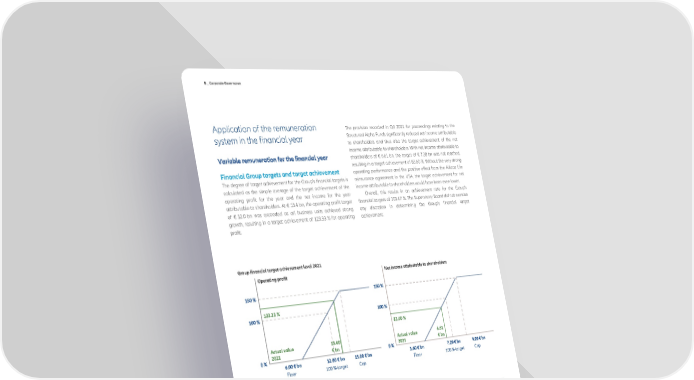 B _ Corporate Governance Application of the remuneration The provision recorded in Q4 2021 for proceedings relating to the system in the financial year Structured Alpha Funds significantly reduced net income attributable to shareholders and thus also the target achievement of the net income attributable to shareholders. With net income attributable to shareholders of € 6.61 bn, the target of € 7.20 bn was not reached, resulting in a target achievement of 83.60 %. Without the very strong Financial Group targets and target achievement operating performance and the positive effect from the Allianz Life The degree of target achievement for the Group's financial targets is reinsurance agreement in the USA, the target achievement for net calculated as the simple average of the target achievement of the income attributable to shareholders would have been even lower. operating profit for the year and the net income for the year Overall, this results in an achievement rate for the Group's attributable to shareholders. At € 13.4 bn, the operating profit target financial targets of 103.47 %. The Supervisory Board did not exercise of € 12.0 bn was exceeded as all business units achieved strong any discretion in determining the Group's financial target growth, resulting in a target achievement of 123.33 % for operating achievement. profit. Group financial target achievement level 2021 Group financial target achievement 2019-2021 Group financial target achievement Operating profit Net income Achievement level combined in % Financial year 2019 2020 2021 2019 2020 2021 2019 2020 2021 Bonus curve 0 % - Floor in € bn 5.80 6.00 6.00 3.80 4.00 3.60 100 % - Target in € bn 11.50 12.00 12.00 7.50 7.90 7.20 150 % - Max in € bn 14.35 15.00 15.00 9.35 9.85 9.00 Target achievement 108.72 75.58 103.47 Achievement level in € bn 11.86 10.75 13.40 7.91 6.81 6.61 Achievement level in % 106.24 79.19 123.33 111.19 71.97 83.60 Weight in % 50.00 50.00 50.00 50.00 50.00 50.00 36 Annual Report 2021 − Allianz Group