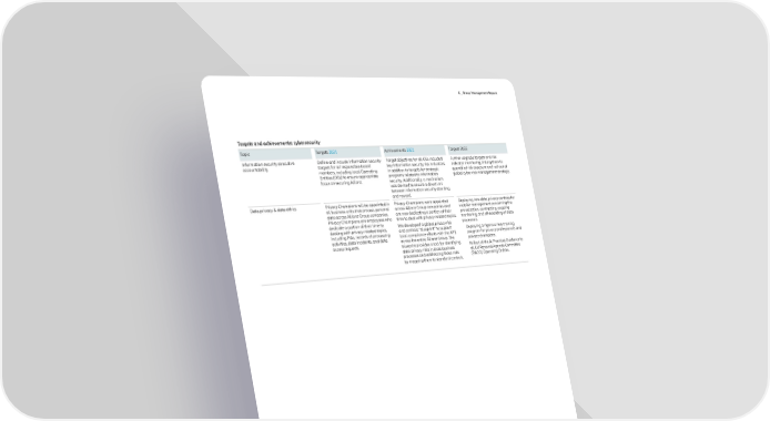 C _ Group Management Report Targets and achievements: cybersecurity Topic Targets 2021 Achievements 2021 Targets 2022 Information security executive Define and include information security Target objectives for all OEs included Further upgrade targets and risk accountability targets for all responsible board key information security risk indicators indicator monitoring, linking them to members, including local Operating in addition to targets for strategic quantified risk exposure and roll-out of Entities (OEs) to ensure appropriate programs related to information global cyber-risk management strategy. focus on securing Allianz. security. Additionally, a mechanism was devised to ensure a direct link between information security standing and reward. Data privacy & data ethics Privacy Champions will be appointed in Privacy Champions were appointed Deploying new data privacy controls for all business units that process personal across Allianz Group companies and supplier management concerning the data across Allianz Group companies. are now dedicating a portion of their pre-selection, contracting, ongoing Privacy Champions are employees who time to deal with privacy-related topics. monitoring, and off-boarding of data dedicate a portion of their time to We developed a global privacy risk processors. dealing with privacy-related topics, and controls “blueprint” to support Deploying a rigorous new training including PIAs, records of processing local compliance efforts with the APS program for privacy professionals and activities, data incidents, and data across the entire Allianz Group. The privacy champions. access requests. blueprint provides a tool for identifying Rollout of the AI Practical Guidance to data privacy risks in local business all EU Renewal Agenda Committee processes and addressing those risks (RACO) Operating Entities. by mapping them to standard controls. Annual Report 2021 − Allianz Group 67