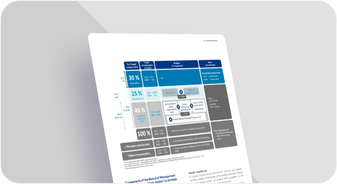 B _ Corporate Governance Pension contribution To provide competitive and cost-effective retirement and disability benefits, company contributions to the defined-contribution pension Fixed remuneration plan “My Allianz Pension” are invested with a guarantee for the The fixed remuneration components comprise the base salary, contributions paid, but no further interest guarantee. perquisites, and pension contributions. They serve to provide a Each year, the Supervisory Board decides whether a budget is competitive remuneration to attract and retain Board of Management provided and, if so, to what extent. The current pension contribution members, whose experience and skills enable them to develop and generally represents 15 % of the target compensation of the board successfully implement the Allianz Group’s strategy. They secure a members. reasonable level of income in line with market conditions, and promote Apart from cases of occupational or general disability for medical a management of the company that is commensurate with risk. reasons, the earliest age a pension can be drawn is 62. Should board membership cease before the retirement age is reached, accrued Base salary pension rights are maintained if vesting requirements are met. The base salary, which is not performance-related, is paid in twelve Members of the Board of Management may have additional equal monthly installments. pension entitlements under former pension plans based on previous positions in the Allianz Group or due to membership of the Board of Perquisites Management prior to 2015. Payments of social insurance Perquisites mainly consist of contributions to accident and liability contributions abroad required by Allianz in individual cases may also insurances, tax consultant fees and the provision of a company car and give rise to additional pension entitlements. further individual perquisites if applicable. Perquisites are not linked to performance. Each member of the Board of Management is Performance-based remuneration responsible for paying the income tax due on these perquisites. The The performance-based variable remuneration includes the short- Supervisory Board regularly reviews the level of perquisites; a term annual bonus and long-term share-based remuneration. The contractual annual cap applies. If an appointment to the Board of composition aims to balance short-term performance, longer-term Management requires a change of residence, relocation expenses are success and sustained value creation. The Supervisory Board ensures reimbursed to an appropriate extent. that the targets for the variable remuneration are challenging, sustainable and ambitious. Annual Report 2021 − Allianz Group 29
