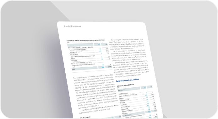 D _ Consolidated Financial Statements Income taxes relating to components of other comprehensive income The reconciling item “other effects” includes expenses of € 6 mn € mn (2020: € 17 mn) related to the write-down of deferred tax assets on 2021 2020 temporary differences and tax credits. Deferred tax income increased by Items that may be reclassified to profit or loss in future periods € 1 mn (2020: € 1 mn) due to the reversal of write-down of deferred tax Foreign currency translation adjustments 148 (155) assets on temporary differences and tax credits. Available-for-sale investments 2,489 (2,018) The tax rates used in the calculation of the Allianz Group’s Cash flow hedges 74 (26) deferred taxes are the applicable national rates, which in 2021 ranged Share of other comprehensive income of associates and joint from 10.0 % to 45.0 %, with changes to tax rates that had already been ventures 16 (16) Miscellaneous 166 (7) adopted in Argentina, Brazil, Colombia, the Netherlands, and the Items that may never be reclassified to profit or loss United Kingdom by 31 December 2021 taken into account. Changes in actuarial gains and losses on defined benefit Deferred tax assets on losses carried forward are recognized to plans 170 78 the extent to which it is more likely than not that sufficient future Total 3,063 (2,145) taxable profits will be available for realization. Entities which suffered a tax loss in either the current or the preceding period recognized deferred tax assets in excess of deferred tax liabilities amounting to The recognized income taxes for the year ended 31 December 2021 € 483 mn (2020: € 363 mn), as there was convincing other evidence are € 102 mn (2020: € 123 mn) above the expected income taxes, that sufficient future taxable profit will be available. which are determined by multiplying the respective income before income taxes with the applicable country-specific tax rates. The following table shows the reconciliation from the expected income taxes to the effectively recognized income taxes for the Allianz Group. Deferred tax assets and liabilities The Allianz Group’s reconciliation is a summary of the individual € mn company-related reconciliations, which are based on the respective As of 31 December 2021 2020 country-specific tax rates taking into consideration consolidation DEFERRED TAX ASSETS effects with an impact on the Group result. The applicable tax rate Financial assets carried at fair value through income 38 111 used in the reconciliation for domestic Allianz Group companies Investments 22,850 14,648 includes corporate tax, trade tax, and the solidarity surcharge, and Deferred acquisition costs 1,160 2,098 amounted to 31.0 % (2020: 31.0 %). Other assets 1,860 1,239 The effective tax rate is determined on the basis of the effective Intangible assets 192 221 income tax expenses on income before income taxes. Tax losses carried forward 1,589 1,544 Insurance reserves 48,632 44,215 Effective tax rate Pensions and similar obligations 5,381 5,168 € mn Other liabilities 3,079 2,141 2021 2020 Total deferred tax assets 84,780 71,383 Income before income taxes 9,520 9,604 Non-recognition or valuation allowance for deferred tax assets Applied weighted income tax rate 24.3% 24.4% on tax losses carried forward (761) (712) Expected income taxes 2,313 2,348 Effect of netting (82,110) (69,665) Trade tax and similar taxes 102 216 Net deferred tax assets 1,910 1,006 Net tax-exempt income (74) (183) DEFERRED TAX LIABILITIES Effects of tax losses (1) 27 Financial assets carried at fair value through income 969 651 Other effects 76 63 Investments 44,241 42,266 Effective income taxes 2,415 2,471 Deferred acquisition costs 6,781 7,338 Effective tax rate 25.4% 25.7% Other assets 1,881 2,336 Intangible assets 1,563 908 Insurance reserves 28,755 21,276 Pensions and similar obligations 2,996 3,023 Other liabilities 550 461 For the year ended 31 December 2021, the write-down of deferred Total deferred tax liabilities 87,736 78,260 taxes on tax losses carried forward increased the tax expenses by Effect of netting (82,110) (69,665) € 82 mn (2020: € 46 mn). The reversal of write-down of deferred tax Net deferred tax liabilities 5,626 8,595 assets on tax losses carried forward resulted in deferred tax income of Net deferred tax assets (liabilities) (3,717) (7,589) € 12 mn (2020: € 0 mn). Due to the use of tax losses carried forward, for which deferred tax assets had previously been written off, the current income tax expenses decreased by € 0 mn (2020: € 1 mn). Deferred tax income increased by € 71 mn (2020: € 19 mn) due to the use of tax losses carried forward, for which deferred tax assets had previously been written off. The aforementioned effects are shown in the reconciliation statement as “effects of tax losses”. 164 Annual Report 2021 − Allianz Group
