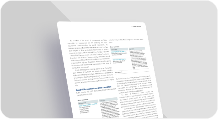 B _ Corporate Governance The members of the Board of Management are jointly In the financial year 2021, the following Group committees were in responsible for management and for complying with legal place: requirements. Notwithstanding this overall responsibility, the individual members independently head the departments they have Group committees been assigned to. There are divisional responsibilities for business Group committees Responsibilities segments as well as functional responsibilities. The latter include the GROUP COMPENSATION COMMITTEE Designing, monitoring, and improving Finance, Risk Management and Controlling Functions, Investments, Board members of Allianz SE and executives group-wide compensation systems in line Operations and IT, Human Resources, Legal, Compliance, Internal below Allianz SE Board level. with regulatory requirements and submitting an annual report on the monitoring results, Audit, or Mergers & Acquisitions. Business division responsibilities focus along with proposals for improvement. on geographical regions or Global Lines. Rules of procedure specify GROUP INVESTMENT COMMITTEE Specifying the strategic asset allocation for the Board members of Allianz SE and Group to enable consistent implementation by the structure and departmental responsibilities of the Board of Allianz Group executives. the operating units, particularly in relation to Management in more detail. alternative assets, monitoring of performance across all asset classes and ensuring consistent Board of Management meetings are led by the Chairperson. organization of the Investment Management Each member of the Board may request a meeting, providing function and Investment Governance across the Group. notification of the proposed subject. The Board makes decisions by a As of 31 December 2021 simple majority of participating members. In the event of a tie, the Chairperson casts the deciding vote. The Chairperson can also veto decisions, but he/she cannot impose any decisions against the majority The Allianz Group runs its operating entities and business segments via vote. an integrated management and control process. First, the Holding and the operating entities define the business strategies and goals. On this basis, joint plans are then prepared for the Supervisory Board’s In the financial year 2021, the following Board of Management consideration when setting targets for the performance-based committees were in place: remuneration of the members of the Board of Management. For details, please refer to the Remuneration Report. Board committees The Board of Management reports regularly and comprehensively to the Supervisory Board on business development, Board committees Responsibilities GROUP FINANCE AND RISK COMMITTEE Preparing the capital and liquidity planning for the company’s financial position and earnings, planning and Giulio Terzariol (Chairman), the Group and Allianz SE, implementing and achievement of objectives, business strategy, and risk exposure. Details Dr. Klaus-Peter Röhler, overseeing the principles of group-wide capital on the Board of Management’s reporting to the Supervisory Board are Dr. Günther Thallinger, and liquidity management as well as risk Christopher Townsend. standards and preparing risk strategy. laid down in the information rules issued by the Supervisory Board. This includes, in particular, significant individual financing transactions and guidelines for Important decisions of the Board of Management require derivatives, Group financing and internal Group approval by the Supervisory Board. These requirements are stipulated capital management as well as establishing and overseeing a group-wide risk management by law, by the Statutes, or in individual cases by decisions of the Annual and monitoring system including stress tests. General Meeting (AGM). Supervisory Board approval is required, for GROUP IT COMMITTEE Developing and proposing a group-wide IT example, for certain capital transactions, intercompany agreements, Dr. Barbara Karuth-Zelle (Chairwoman), strategy, monitoring its implementation and, Dr. Klaus-Peter Röhler, approving local and group-wide IT investments and the launch of new business segments or the closure of existing Ivan de la Sota, as well as reviewing and overseeing individual Giulio Terzariol, IT projects. ones. Approval is also required for acquisitions of companies and Dr. Günther Thallinger, holdings in companies as well as for divestments of Group companies Christopher Townsend. that exceed certain threshold levels. The Agreement concerning the GROUP MERGERS Managing and overseeing Group M&A Participation of Employees in Allianz SE, in the version dated AND ACQUISITIONS COMMITTEE transactions, including approval of Renate Wagner (Chairwoman), individual transactions within certain June 2021 (hereinafter “SE Agreement”), requires the approval of the Oliver Bäte, thresholds. Supervisory Board for the appointment of the member of the Board of Sergio Balbinot, Giulio Terzariol. Management responsible for employment and social welfare. As of 31 December 2021 The composition of the Board of Management is described in Mandates of the Members of the Board of Management or on our website at www.allianz.com/management-board. A general In addition to Board committees, there are also Group committees. description of the function of the Board of Management can also be They are responsible for preparing decisions for the Board of found there. Management of Allianz SE, submitting proposals for resolutions, and ensuring a smooth flow of information within the Group. Annual Report 2021 − Allianz Group 17