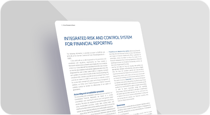 C _ Group Management Report INTEGRATED RISK AND CONTROL SYSTEM FOR FINANCIAL REPORTING The following information is provided pursuant to § 289 (4) and − Preventive and detective key controls addressing financial § 315 (4) of the German Commercial Code (“Handelsgesetzbuch – reporting risks have been put in place to reduce the likelihood HGB”). and impact of financial misstatements. When a potential risk In line with both our prudent approach to risk governance and materializes, actions are taken to reduce the impact of the compliance with regulatory requirements, we have created a financial misstatement. Given the strong dependence of financial framework and processes to identify and mitigate the risk of material reporting processes on information technology systems, we errors in our Consolidated Financial Statements (this also includes have also implemented IT controls. our market value balance sheet and risk capital calculation risks). The − Last but not least, we focus on ensuring that controls are Integrated Risk and Control System (IRCS) is regularly reviewed appropriately designed and effectively executed to mitigate and updated. It covers three buckets of risks: financial reporting risks, risks. We have set consistent process and documentation compliance risks, and other operational risks (including IT risks). The IT requirements across the Allianz Group for elements such as the controls are based on COBIT 5 and include, for example, controls design of key controls and evidence of their execution as well for access right management, project and change management. In as related control design and effectiveness testing procedures. addition, our Entity Level Control Assessment (ELCA) framework We conduct an annual assessment of our internal control system contains controls to monitor the effectiveness of our system of to maintain and continuously enhance its effectiveness. Group governance. Audit and local internal audit functions ensure that the overall quality of our control system is subject to regular control testing, in order to assure reasonable design and operating The accounting and consolidation processes we use to produce our effectiveness. Internal Audit does so through a comprehensive Consolidated Financial Statements are based on a central risk-based approach that assesses the key controls of the consolidation and reporting IT solution and local general ledger company’s internal procedures and processes, including local solutions. The latter are largely harmonized throughout the Group, and group-internal controls over financial reporting risks, using standardized processes, master data, posting logics, and from an integrated perspective. interfaces for data delivery to the Holding. Access rights to accounting systems are managed according to strict authorization procedures. Accounting rules for the classification, valuation, and disclosure of The Group center functions, the Group Disclosure Committee, and our all items in the balance sheet, the income statement, and notes related operating entities support the Allianz SE Board of Management to to the annual and interim financial statements are defined primarily in ensure the completeness, accuracy, and reliability of our Consolidated our Group accounting manual. Internal controls are embedded in the Financial Statements. accounting and consolidation processes to safeguard the accuracy, The Group Disclosure Committee ensures that the board completeness, and consistency of the information provided in our members are made aware of all material information that could affect financial statements. our disclosures, and assesses the completeness and accuracy of the information provided in the quarterly statements, half-year and annual financial reports as well as in the Solvency II qualitative Our approach can be summarized as follows: reports1. In 2021, the Group Disclosure Committee met on a quarterly basis before the quarterly statements and financial reports were − We use a centrally developed risk catalog which is linked to issued. In addition, the Group Disclosure Committee reviewed and individual accounts. This risk catalog is reviewed on a yearly basis approved the Solvency II qualitative reports prior to issuance. and is the starting point for the definition of the Group’s as well as Subsidiaries within the scope of our control system are individually the operating entities’ scope of financial reporting risks. The responsible for adhering to the Group’s internal governance and methodology is described in our IRCS Guideline. In the course of control policy and for creating local Disclosure Committees that are the scoping process, both materiality and susceptibility to a similar to the Group-level committee. The entities’ CEOs and CFOs misstatement are considered simultaneously. In addition to the provide periodic sign-offs to the management of Allianz SE, quantitative calculation, we also consider qualitative criteria, such certifying the effectiveness of their local systems of internal control as the expected increase in business volume or the complexity of as well as the completeness, accuracy, and reliability of financial data transactions. reported to the Holding. − Based on the centrally provided risk catalog, our local entities identify risks that could lead to material financial misstatements. 1_Solvency and Financial Condition Report and Regular Supervisory Report. 116 Annual Report 2021 − Allianz Group
