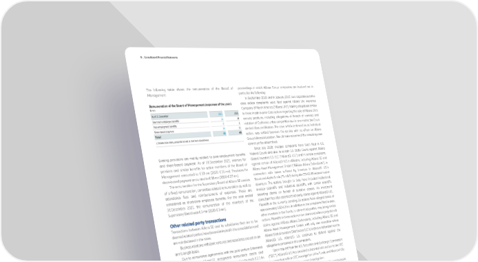 D _ Consolidated Financial Statements The following table shows the remuneration of the Board of proceedings in which Allianz Group companies are involved are in Management: particular the following: In September 2015 and in January 2017, two separate putative Remuneration of the Board of Management (expenses of the year) class action complaints were filed against Allianz Life Insurance € mn Company of North America ("Allianz Life") making allegations similar As of 31 December 2021 2020 to those made in prior class actions regarding the sale of Allianz Life's 1 Short-term employee benefits 21 18 annuity products, including allegations of breach of contract and Post-employment benefits 5 6 violation of California unfair competition law. In one matter, the Court Share-based payment 19 21 denied class certification. The case, which continued as an individual Total 45 45 action, was settled between the parties with no effect on Allianz 1_Includes base salary, perquisites as well as short-term annual bonus. Group's financial position. The ultimate outcome of the remaining case cannot yet be determined. Since July 2020, multiple complaints have been filed in U.S. Existing provisions are mainly related to post-employment benefits Federal Courts and also in certain U.S. State Courts against Allianz and share-based payment. As of 31 December 2021, reserves for Global Investors U.S. LLC (“AllianzGI U.S.”) and in certain complaints, pensions and similar benefits for active members of the Board of against certain of AllianzGI U.S.’s affiliates, including Allianz SE and Management amounted to € 33 mn (2020: € 35 mn). Provisions for Allianz Asset Management GmbH (“Affiliate Allianz Defendants”), in share-based payment amounted to € 38 mn (2020: € 27 mn). connection with losses suffered by investors in AllianzGI U.S.’s The remuneration for the Supervisory Board of Allianz SE consists Structured Alpha funds (“Funds”) during the COVID-19 related market of a fixed remuneration, committee-related remuneration as well as downturn. The actions brought to date have included institutional attendance fees and reimbursement of expenses. These are investor plaintiffs and individual plaintiffs, with certain plaintiffs considered as short-term employee benefits. For the year ended asserting claims on behalf of putative classes. An investment 31 December 2021, the remuneration of the members of the consultant has also asserted third-party claims against AllianzGI U.S.. Supervisory Board was € 3 mn (2020: € 3 mn). Plaintiffs in the currently pending 26 actions have alleged losses of approximately USD 6.3 bn. In addition to the complaints filed to date, other investors in the Funds, or other third parties, may bring similar Transactions between Allianz SE and its subsidiaries that are to be actions. Plaintiffs in these actions have dismissed without prejudice all deemed related parties have been eliminated in the consolidation and claims against Affiliate Allianz Defendants, including Allianz SE and are not disclosed in the notes. Allianz Asset Management GmbH, with only one exception where Business relations with joint ventures and associates are set on an Allianz Global Investors Distributors LLC is kept as a defendant next to arm’s length basis. AllianzGI U.S.. AllianzGI U.S. continues to defend against the Due to reinsurance agreements with the joint venture Enhanzed allegations contained in the complaints. Reinsurance Ltd., Allianz SE recognized reinsurance assets and Upon request from the U.S. Securities and Exchange Commission deposits retained for reinsurance ceded amounting to each € 2.1 bn (“SEC”), AllianzGI U.S. has provided substantial information to the SEC for the year ended 31 December 2021. in connection with an SEC investigation of the Funds, and Allianz is fully cooperating with the SEC's ongoing investigation. In addition, the U.S. Department of Justice (“DOJ”) is continuing its 37 _ Litigation, guarantees, and other investigation concerning the Funds, and AllianzGI U.S. is also fully contingencies and commitments cooperating with the DOJ in the investigation and is continuing its own review of the matter. On 1 August 2021, in light of the DOJ investigation and based on information then available to Allianz, the Board of Management of Allianz Group companies are involved in legal, regulatory, and Allianz SE reassessed the Structured Alpha matter and came to the arbitration proceedings in Germany and a number of foreign conclusion, as also announced by Ad-hoc disclosure, that there is a jurisdictions, including the United States. Such proceedings arise in the relevant risk that the matters relating to the Funds could materially ordinary course of business, including, amongst others, their activities impact future financial results of Allianz Group. as insurance, banking and asset management companies, employers, In light of the discussions with plaintiffs and U.S. Governmental investors and taxpayers. While it is not feasible to predict or determine Authorities concerning the Structured Alpha matter and in anticipation the ultimate outcome of such proceedings, they may result in of settlements with major investors in the Funds Allianz decided, as substantial damages or other payments or penalties or result in announced by Ad-hoc disclosure on 17 February 2022, to recognize a adverse publicity and damage to the Allianz Group’s reputation. As a provision of € 3.7 bn for the fourth quarter of 2021. The provision result, such proceedings could have an adverse effect on the Allianz reflects the elements of the expected obligation in the Structured Group’s business, financial condition and results of operations. Apart Alpha matter, for which, as of today, a reliable estimate could be from the proceedings discussed below, Allianz SE is not aware of any determined. Final settlements with major investors were reached threatened or pending legal, regulatory or ar