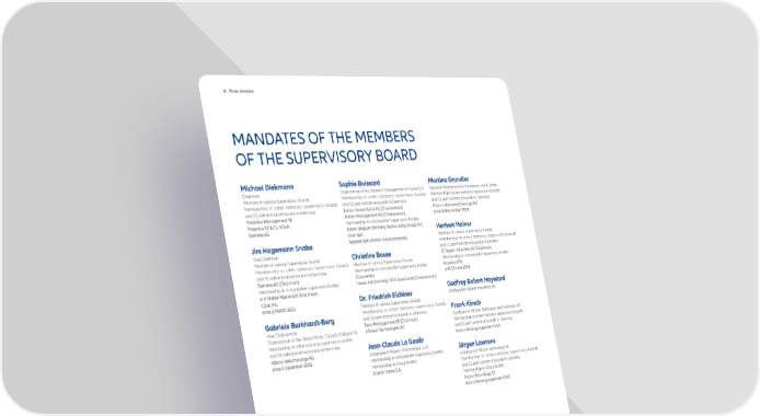 A _ To our Investors MANDATES OF THE MEMBERS OF THE SUPERVISORY BOARD Chairman Chairwoman of the Board of Management of Korian S.A. National Representative Insurances, ver.di Berlin Member of various Supervisory Boards Membership in other statutory supervisory boards Membership in other statutory supervisory boards Membership in other statutory supervisory boards and SE administrative boards in Germany and SE administrative boards in Germany and SE administrative boards in Germany Membership in comparable1 supervisory bodies Member of various Supervisory Boards Membership in other statutory supervisory boards Vice Chairman and SE administrative boards in Germany Member of various Supervisory Boards 1 Membership in other statutory supervisory boards Member of various Supervisory Boards Membership in comparable supervisory bodies and SE administrative boards in Germany Membership in comparable1 supervisory bodies 1 Membership in comparable supervisory bodies Employee of Allianz Insurance plc Member of various Supervisory Boards Membership in other statutory supervisory boards and SE administrative boards in Germany Employee of Allianz Beratungs- und Vertriebs-AG Vice Chairwoman Membership in other statutory supervisory boards Chairwoman of the Group Works Council of Allianz SE and SE administrative boards in Germany Membership in other statutory supervisory boards and SE administrative boards in Germany Employee of Allianz Informatique G.I.E. Membership in comparable1 supervisory bodies Membership in Group bodies Employee of Allianz Technology SE Membership in other statutory supervisory boards and SE administrative boards in Germany Membership in Group bodies 1_Generally, we regard memberships in other supervisory bodies as comparable if the company is listed on a stock exchange or has more than 500 employees. 12 Annual Report 2021 − Allianz Group