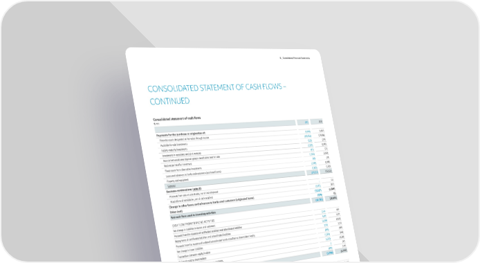 D _ Consolidated Financial Statements CONSOLIDATED STATEMENT OF CASH FLOWS – CONTINUED Consolidated statement of cash flows € mn 2021 2020 Payments for the purchase or origination of: Financial assets designated at fair value through income (5,594) (3,807) Available-for-sale investments (188,456) (179,986) Held-to-maturity investments (225) (279) Investments in associates and joint ventures (1,525) (2,005) Non-current assets and disposal groups classified as held for sale (37) (72) Real estate held for investment (1,563) (2,043) Fixed assets from alternative investments (48) (19) Loans and advances to banks and customers (purchased loans) (1,745) (2,380) Property and equipment (1,363) (1,429) Subtotal (200,557) (192,022) Business combinations (note 3): Proceeds from sale of subsidiaries, net of cash disposed - 721 Acquisitions of subsidiaries, net of cash acquired (3,172) (857) Change in other loans and advances to banks and customers (originated loans) (7,817) (6,844) Other (net) (170) (2) Net cash flow used in investing activities (19,783) (28,870) CASH FLOW FROM FINANCING ACTIVITIES Net change in liabilities to banks and customers 1,454 659 Proceeds from the issuance of certificated liabilities and subordinated liabilities 4,593 5,719 Repayments of certificated liabilities and subordinated liabilities (6,299) (4,615) Proceeds from the issuance of undated subordinated bonds classified as shareholders' equity 2,303 2,272 Net change in lease liabilities (396) (409) Transactions between equity holders (1,034) (644) Dividends paid to shareholders (4,270) (4,146) Net cash from sale or purchase of treasury shares 2 (67) Other (net) (138) (159) Net cash flow used in financing activities (3,786) (1,390) SUPPLEMENTARY INFORMATION ON THE CONSOLIDATED STATEMENT OF CASH FLOWS Income taxes paid (from operating activities) (3,018) (2,691) Dividends received (from operating activities) 3,653 2,285 Interest received (from operating activities) 17,871 17,829 Interest paid (from operating activities) (1,090) (1,074) SIGNIFICANT NON-CASH TRANSACTIONS U.S. reinsurance transaction1 Reinsurance assets 31,309 - Unearned premiums 1,480 - Deferred tax assets/liabilities 393 - Other non-cash income/expenses (946) - Other (net) (24,824) - Available-for-sale investments (7,404) - Loans and advances to banks and customers (8) - 1_A reinsurance transaction in the United States without impacting the cashflows led to adjustments in the following positions. For further information, please refer to note 8. Annual Report 2021 − Allianz Group 123