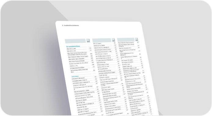 D _ Consolidated Financial Statements % % % 1 1 1 owned owned owned 3,8 GBTC II LP, Singapore 50.0 Allianz Global Small Cap Equity, Senningerberg 11.0 Non-consolidated affiliates Helios SCC Sp. z o.o., Katowice 45.0 7 Allianz Impact Investment Fund S.A. SICAV-RAIF, Senningerberg 20.0 3 Allianz 004 S.r.l., Rome 51.0 Hudson One Ferry JV L.P., Wilmington, DE 45.0 7 Allianz 101 S.r.l., Turin 51.0 Israel Credit Insurance Company Ltd., Tel Aviv 50.0 Allianz Invest Vorsorgefonds, Vienna 28.6 3 Allianz Global Corporate & Specialty SE Escritório Italian Shopping Centre Investment S.r.l., Milan 50.0 Alpha Asia Macro Trends Fund III Private Limited, de Representação no Brasil Ltda., Rio de Janeiro 100.0 Singapore 27.7 3 LBA IV-PPI Venture LLC, Dover, DE 45.0 7 Allianz Infrastructure Holding II Pte. Ltd., Singapore 100.0 Archstone Multifamily Partners AC JV LP, LBA IV-PPII-Office Venture LLC, Dover, DE 45.0 7 Wilmington, DE 40.0 Allianz Northern Ireland Limited, Belfast 100.0 LBA IV-PPII-Retail Venture LLC, Dover, DE 45.0 7 Archstone Multifamily Partners AC LP, Wilmington, Allianz Pension Services AG, Wallisellen 100.0 LPC Logistics Venture One LP, Wilmington, DE 31.7 7 DE 28.6 Assurance France Aviation S.A., Paris la Défense 100.0 Muralis MF TMK, Tokyo 49.9 7 Areim Fastigheter 2 AB, Stockholm 23.3 COGAR S.à r.l., Paris 100.0 NET4GAS Holdings s.r.o., Prague 50.0 Areim Fastigheter 3 AB, Stockholm 31.6 SCPI Allianz Home, Paris la Défense 27.9 2 Assurcard S.A., Louvain 20.0 3,7 NeuConnect Britain Ltd., London 26.2 Top Versicherungs-Vermittler Service GmbH, NRF (Finland) AB, Västeras 50.0 Assurpath S.A., Buenos Aires 40.0 Vienna 100.0 Autoelektro tehnicki pregledi d.o.o., Vojnić 49.0 NRP Nordic Logistics Fund AS, Oslo 49.5 7 Aviva Investors SFIO Subfundusz Aviva Investors Ophir-Rochor Commercial Pte. Ltd., Singapore 60.0 7 Joint ventures Krotkoterminowych Obligacji, Warsaw 21.6 3 Orion MF TMK, Tokyo 49.9 7 114 Venture LP, Wilmington, DE 49.5 7 AWP Insurance Brokerage (Beijing) Co. Ltd., Beijing 100.0 8 Piaf Bidco B.V., Amsterdam 23.9 7 1515 Broadway Realty LP, Dover, DE 49.6 7 Bajaj Allianz General Insurance Company Ltd., Podium Fund HY REIT Owner LP, Wilmington, DE 44.3 7 Pune 26.0 30 HY WM REIT Owner LP, Wilmington, DE 49.0 7 Porterbrook Holdings I Limited, Derby 30.0 7 Bajaj Allianz Life Insurance Company Ltd., Pune 26.0 53 State JV L.P., Wilmington, DE 49.0 7 55-15 Grand Avenue Investor JV L.P., Wilmington, Previndustria - Fiduciaria Previdenza Imprenditori Bazalgette Equity Ltd., London 34.3 DE 49.9 7 S.p.A., Milan 50.0 Beacon Platform Incorporated, Wilmington, DE 26.9 A&A Centri Commerciali S.r.l., Bolzano 50.0 Queenspoint S.L., Madrid 50.0 Berkshire Hathaway Services India Private Limited, RMPA Holdings Limited, Colchester 56.0 7 New Delhi 20.0 AA Ronsin Investment Holding Limited, Hong Kong 62.0 7 ACRE Acacia Investment Trust I, Sydney 50.0 3 SC Holding SAS, Paris 50.0 Berkshire India Private Limited, New Delhi 20.0 3,7 8 ACRE Acacia Management I Pty Ltd., Sydney 50.0 Scape Australia (Vulture) Trust, Sydney 35.8 Best Regain Limited, Hong Kong 16.4 3,7 Allee-Center Kft., Budapest 50.0 Scape Australia Holding Trust, Sydney 35.8 Blue Vista Student Housing Select Strategies Fund Scape Investment Operating Company No. 3 Pty L.P., Dover, DE 24.9 Altair MF TMK, Tokyo 49.9 7 Ltd., Sydney 35.8 7 Broker on-line de Productores de Seguros S.A., AMLI-Allianz Investment LP, Wilmington, DE 75.0 7 Buenos Aires 30.0 3,7 Scape Investment Trust No. 3, Sydney 35.8 Arcturus MF TMK, Tokyo 51.0 7 3,8 SCI Docks V2, Paris la Défense 50.0 Carlyle China Realty L.P., George Town 50.0 AREAP Core I LP, Singapore 50.0 SCI Docks V3, Paris la Défense 50.0 Carlyle China Rome Logistics L.P., George Town 38.2 3 AREAP JMF 1 LP, Singapore 33.3 7 SES Shopping Center AT 1 GmbH, Salzburg 50.0 CBRE Dutch Office Fund, Schiphol 26.0 3 AS Gasinfrastruktur Beteiligung GmbH, Vienna 55.6 7 SES Shopping Center FP 1 GmbH, Salzburg 50.0 Chicago Parking Meters LLC, Wilmington, DE 49.9 Austin West Campus Student Housing LP, Sirius MF TMK, Tokyo 49.9 7 Data Quest SAL, Beirut 36.0 Wilmington, DE 44.7 7 Solunion Compañía Internacional de Seguros y Delgaz Grid S.A., Târgu Mures 30.0 AZ/JH Co-Investment Venture (DC) LP, Wilmington, Reaseguros SA, Madrid 50.0 Delong Limited, Hong Kong 16.4 8 DE 80.0 7 AZ/JH Co-Investment Venture (IL) LP, Wilmington, Spanish Gas Distribution Investments S.à r.l., Douglas Emmett Partnership X LP, Wilmington, DE 28.1 Luxembourg 40.0 7 DE 80.0 7 ERES APAC II (GP) S.à r.l., Luxembourg 32.1 3 Bajaj Allianz Financial Distributors Limited, Pune 50.0 SPREF II Pte. Ltd., Singapore 50.0 European Outlet Mall Fund FCP-FIS, Luxembourg 26.0 3 BCal Houston JV L.P., Wilmington, DE 40.0 7 Stonecutter JV Limited, London 50.0 Four Oaks Place LP, Wilmington, DE 49.0 Terminal Venture LP, Wilmington, DE 30.9 7 BL West End Offices Limited, London 75.0 7 3,8 France Investissement Relance 2020, Paris 74.4 The FIZZ Student Housing Fund S.C.S., Luxembourg 49.5 7 Canis MF TMK, Tokyo 49.9 7 Global Stream Limited, Hong Kong 16.4 8 The State-Whitehall Company LP, Dover, DE 49.9 7 CH A Logistics Wholesale Fund, Sydney 50.0 3 Glory Basic Limited, Hong Kong 16.4 8 Chapter Master Limited Partnership, New York, NY 45.5 7 Tokio Marine Rogge Asset Management Ltd., HUB Platform Technology Partners Ltd., London 28.6 London 50.0 CHP-AZ Seeded Industrial L.P., Wilmington, DE 49.0 7 TopTorony Ingatlanhasznosító Zrt., Budapest 50.0 IndInfravit Trust, Chennai 22.7 Companhia de Seguro de Créditos S.A., Lisbon 50.0 Triskelion Property Holding Designated Activity Jumble Succeed Limited, Hong Kong 16.4 8 CPIC Fund Management Co. Ltd., Shanghai 49.0 7 Company, Dublin 50.0 Lennar Multifamily Venture LP, Wilmington, DE 11.3 8 CPPIC Euler Hermes Insurance Sales Co. Ltd., Valley (III) Pte. Ltd., Singapore 41.5 7 Link (LRM) Limited, Hong Kong 16.4 8 Shanghai 49.0 7 VGP European Logistics 2 S.à r.l., Senningerberg 50.0 Long Coast Limited, Hong Kong 16.4 8 D