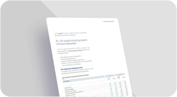 D _ Consolidated Financial Statements refer to note 34. The maximum credit risk exposure is represented by the carrying amount of the financial assets. 34 _ Fair values and carrying amounts of financial instruments Certain risk disclosure requirements of IFRS 7 are reflected in the following sections of the Risk and Opportunity Report within the Group Management Report: − Risk-based steering and risk management, − Internal risk capital framework, − Allianz risk profile and management assessment, − Market risk, credit risk, and liquidity risk in the section Quantifiable risks and opportunities by risk category. The following table compares the carrying amount and fair value of the Allianz Group’s financial assets and financial liabilities: Fair values and carrying amounts of financial instruments € mn As of 31 December 2021 2020 Carrying Carrying amount Fair value amount Fair value FINANCIAL ASSETS Cash and cash equivalents 24,214 24,214 22,443 22,443 Financial assets held for trading 11,961 11,961 16,107 16,107 Financial assets designated at fair value through income 7,643 7,643 5,084 5,084 Available-for-sale investments 625,250 625,250 621,777 621,777 Held-to-maturity investments 2,749 2,887 2,563 2,884 Investments in associates and joint ventures 15,416 20,149 14,570 17,706 Real estate held for investment 16,923 28,763 14,294 25,094 Loans and advances to banks and customers 124,079 138,234 116,576 138,198 Financial assets for unit-linked contracts 158,346 158,346 137,307 137,307 FINANCIAL LIABILITIES Financial liabilities held for trading 20,891 20,891 24,079 24,079 Liabilities to banks and customers 15,468 15,481 14,722 14,768 Financial liabilities for unit-linked contracts 158,346 158,346 137,307 137,307 Financial liabilities for puttable financial instruments 2,615 2,615 2,072 2,072 Certificated liabilities 10,788 11,611 9,206 10,409 Subordinated liabilities 10,956 11,547 14,034 15,039 As of 31 December 2021, fair values could not reliably be measured for equity investments with carrying amounts totaling € 110 mn (2020: € 98 mn). These investments are primarily investments in privately held corporations and partnerships. During the year ended 31 December 2021, such investments with carrying amounts of € 91 mn (2020: € 93 mn) were sold. The gains and losses from these disposals were immaterial. Annual Report 2021 − Allianz Group 167