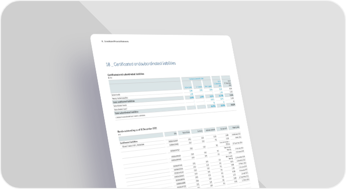 D _ Consolidated Financial Statements 18 _ Certificated and subordinated liabilities Certificated and subordinated liabilities € mn Contractual maturity date As of As of 31 December 31 December Up to 1 year 1 - 5 years Over 5 years 2021 2020 Senior bonds 1,500 2,999 5,091 9,589 8,036 Money market securities 1,198 - - 1,198 1,170 Total certificated liabilities 2,698 2,999 5,091 10,788 9,206 Subordinated bonds - - 10,911 10,911 13,989 Subordinated loans1 - - 45 45 45 Total subordinated liabilities - - 10,956 10,956 14,034 1_Relates to subordinated loans issued by subsidiaries. Bonds outstanding as of 31 December 2021 mn ISIN Year of issue Currency Notional amount Coupon in % Maturity date Certificated liabilities Allianz Finance II B.V., Amsterdam DE000A1G0RU9 2012 EUR 1,500 3.500 14 February 2022 DE000A19S4U8 2017 EUR 750 0.250 6 June 2023 3-months Euribor + DE000A3KY367 2021 EUR 300 100 bps 22 November 2024 Non-interest DE000A28RSQ8 2020 EUR 500 bearing 14 January 2025 DE000A2RWAX4 2019 EUR 750 0.875 15 January 2026 Non-interest DE000A3KY342 2021 EUR 700 bearing 22 November 2026 DE000A19S4V6 2017 EUR 750 0.875 6 December 2027 DE000A1HG1K6 2013 EUR 750 3.000 13 March 2028 DE000A2RWAY2 2019 EUR 750 1.500 15 January 2030 DE000A28RSR6 2020 EUR 750 0.500 14 January 2031 DE000A180B80 2016 EUR 750 1.375 21 April 2031 DE000A3KY359 2021 EUR 500 0.500 22 November 2033 DE000A1HG1L4 2013 GBP 750 4.500 13 March 2043 Subordinated liabilities Allianz SE, Munich DE000A1RE1Q3 2012 EUR 1,500 5.625 17 October 2042 DE000A14J9N8 2015 EUR 1,500 2.241 7 July 2045 DE000A2DAHN6 2017 EUR 1,000 3.099 6 July 2047 XS1556937891 2017 USD 600 5.100 30 January 2049 DE000A2YPFA1 2019 EUR 1,000 1.301 25 September 2049 DE000A254TM8 2020 EUR 1,000 2.121 8 July 2050 DE000A1YCQ29 2013 EUR 1,500 4.750 Perpetual bond DE000A13R7Z7 2014 EUR 1,500 3.375 Perpetual bond XS1485742438 2016 USD 1,500 3.875 Perpetual bond DE000A289FK7 2020 EUR 1,250 2.625 Perpetual bond US018820AA81/ USX10001AA78 2020 USD 1,250 3.500 Perpetual bond DE000A3E5TR0 2021 EUR 1,250 2.600 Perpetual bond US018820AB64/ USX10001AB51 2021 USD 1,250 3.200 Perpetual bond 158 Annual Report 2021 − Allianz Group