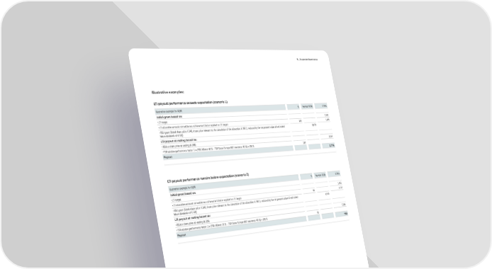 B _ Corporate Governance Illustrative examples: LTI payout: performance exceeds expectation (scenario 1) Illustrative example for RBM % Number RSUs € thou Initial grant based on: •LTI target 1,463 •LTI allocation amount: annual bonus achievement factor applied to LTI target 110 1,609 •RSU grant (listed share price: € 240, share price relevant to the calculation of the allocation: € 190 (= reduced by the net present value of estimated 8,470 future dividends of € 50)) LTI payout at vesting based on: •RSUs x share price at vesting (€ 298) 2,524 •TSR relative performance factor: 2 x (TSR Allianz: 45 % – TSR Stoxx Europe 600 Insurance: 40 %) + 100 % 110 Payout 2,776 LTI payout: performance remains below expectation (scenario 2) Illustrative example for RBM % Number RSUs € thou Initial grant based on: •LTI target 1,463 •LTI allocation amount: annual bonus achievement factor applied to LTI target 90 1,317 •RSU grant (listed share price: € 240, share price relevant to the calculation of the allocation: € 190 (= reduced by the net present value of estimated 6,930 future dividends of € 50)) LTI payout at vesting based on: •RSUs x share price at vesting (€ 226) 1,566 •TSR relative performance factor: 2 x (TSR Allianz: 15 % – TSR Stoxx Europe 600 Insurance: 40 %) + 100 % 50 Payout 783 Annual Report 2021 − Allianz Group 35