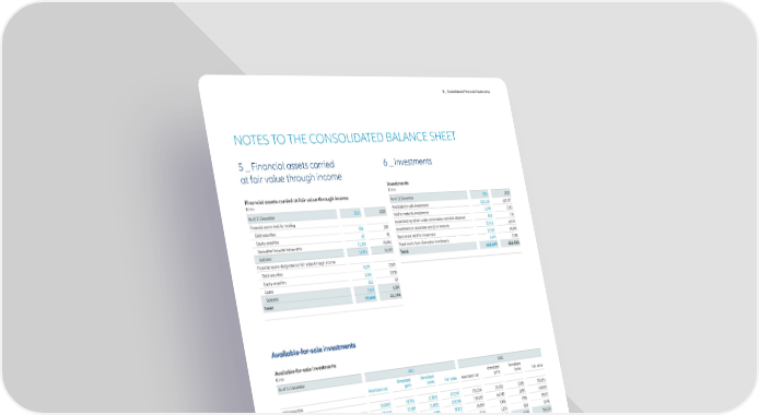 D _ Consolidated Financial Statements NOTES TO THE CONSOLIDATED BALANCE SHEET 5 _ Financial assets carried 6 _ Investments at fair value through income Investments € mn Financial assets carried at fair value through income As of 31 December 2021 2020 € mn As of 31 December 2021 2020 Available-for-sale investments 625,250 621,777 Held-to-maturity investments 2,749 2,563 Financial assets held for trading Funds held by others under reinsurance contracts assumed 838 770 Debt securities 708 599 Investments in associates and joint ventures 15,416 14,570 Equity securities 63 45 Real estate held for investment 16,923 14,294 Derivative financial instruments 11,190 15,463 Fixed assets from alternative investments 2,473 2,548 Subtotal 11,961 16,107 Total 663,649 656,522 Financial assets designated at fair value through income Debt securities 4,275 2,569 Equity securities 3,264 2,418 Loans 103 97 Subtotal 7,643 5,084 Total 19,604 21,191 Available-for-sale investments € mn As of 31 December 2021 2020 Unrealized Unrealized Unrealized Unrealized Amortized cost gains losses Fair value Amortized cost gains losses Fair value Debt securities Corporate bonds 260,903 18,761 (1,867) 277,797 253,234 29,655 (238) 282,651 Government and government agency bonds1 202,542 27,087 (2,882) 226,748 199,267 44,740 (187) 243,820 MBS/ABS 28,157 804 (149) 28,812 26,654 1,466 (98) 28,023 Other 9,493 2,671 (57) 12,106 7,542 1,279 (82) 8,740 2 Subtotal 501,094 49,323 (4,955) 545,462 486,697 77,141 (604) 563,234 Equity securities 53,609 26,626 (447) 79,788 43,053 15,891 (400) 58,543 Total 554,703 75,948 (5,402) 625,250 529,750 93,031 (1,004) 621,777 1_As of 31 December 2021, fair value and amortized cost of bonds from countries with a rating below AA amount to € 92,825 mn (2020: € 95,096 mn) and € 86,440 mn (2020: € 82,202 mn), respectively. 2_As of 31 December 2021, fair value and amortized cost of debt securities with a contractual maturity of less than one year amount to € 41,816 mn (2020: € 38,472 mn) and € 37,378 mn (2020: € 36,403 mn), respectively. Held-to-maturity investments € mn As of 31 December 2021 2020 Unrealized Unrealized Unrealized Unrealized Amortized cost gains losses Fair value Amortized cost gains losses Fair value Government and government agency bonds 2,546 171 (73) 2,644 2,322 273 (4) 2,591 Corporate bonds1 202 41 - 243 241 52 - 293 Total2 2,749 212 (73) 2,887 2,563 325 (4) 2,884 1_Also include corporate mortgage-backed securities. 2_As of 31 December 2021, fair value and amortized cost of debt securities with a contractual maturity of less than one year amount to € 202 mn (2020: € 116 mn) and € 200 mn (2020: € 114 mn), respectively. Annual Report 2021 − Allianz Group 145