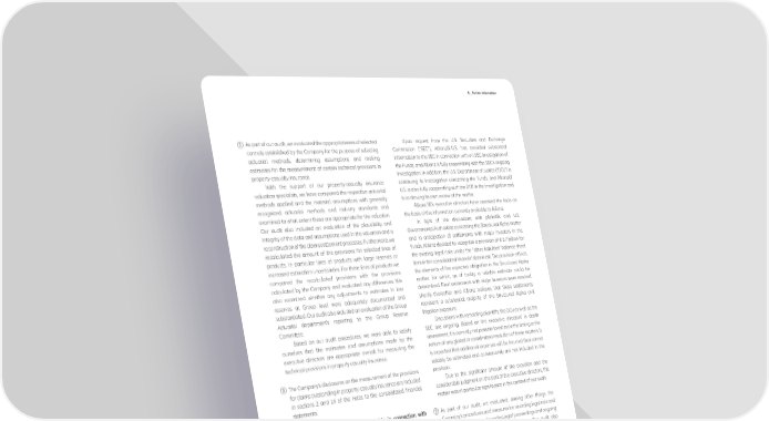 E _ Further Information ② As part of our audit, we evaluated the appropriateness of selected Upon request from the U.S. Securities and Exchange controls established by the Company for the purpose of selecting Commission (“SEC”), AllianzGI U.S. has provided substantial actuarial methods, determining assumptions and making information to the SEC in connection with an SEC investigation of estimates for the measurement of certain technical provisions in the Funds, and Allianz is fully cooperating with the SEC's ongoing property-casualty insurance. investigation. In addition, the U.S. Department of Justice (“DOJ”) is With the support of our property-casualty insurance continuing its investigation concerning the Funds, and AllianzGI valuation specialists, we have compared the respective actuarial U.S. is also fully cooperating with the DOJ in the investigation and methods applied and the material assumptions with generally is continuing its own review of the matter. recognized actuarial methods and industry standards and Allianz SE's executive directors have assessed the facts on examined to what extent these are appropriate for the valuation. the basis of the information currently available to Allianz. Our audit also included an evaluation of the plausibility and In light of the discussions with plaintiffs and U.S. integrity of the data and assumptions used in the valuation and a Governmental Authorities concerning the Structured Alpha matter reconstruction of the claims settlement processes. Furthermore, we and in anticipation of settlements with major investors in the recalculated the amount of the provisions for selected lines of Funds, Allianz decided to recognize a provision of € 3.7 billion for products, in particular lines of products with large reserves or the existing legal risks under the “other liabilities” balance sheet increased estimation uncertainties. For these lines of products we item in the consolidated financial statement. The provision reflects compared the recalculated provisions with the provisions the elements of the expected obligation in the Structured Alpha calculated by the Company and evaluated any differences. We matter, for which, as of today, a reliable estimate could be also examined whether any adjustments to estimates in loss determined. Final settlements with major investors were reached reserves at Group level were adequately documented and shortly thereafter and Allianz believes that these settlements substantiated. Our audit also included an evaluation of the Group represent a substantial majority of the Structured Alpha civil Actuarial department's reporting to the Group Reserve litigation exposure. Committee. Discussions with remaining plaintiffs, the DOJ as well as the Based on our audit procedures, we were able to satisfy SEC are ongoing. Based on the executive directors’ in depth ourselves that the estimates and assumptions made by the assessment, it is currently not possible to estimate the timing or the executive directors are appropriate overall for measuring the nature of any global or coordinated resolution of these matters. It technical provisions in property casualty insurance. is expected that additional expenses will be incurred that cannot reliably be estimated and consequently are not included in the ③ The Company's disclosures on the measurement of the provisions provision. for claims outstanding in property-casualty insurance are included Due to the significant amount of the provision and the in sections 2 and 14 of the notes to the consolidated financial considerable judgment on the part of the executive directors, this statements. matter was of particular significance in the context of our audit. ❸ Accounting treatment of the legal risks in connection with ② As part of our audit, we evaluated, among other things, the AllianzGI U.S. Structured Alpha Funds Company's procedures and measures for recording legal risks and assessing the outcome of pending legal proceedings and ongoing ① Since July 2020, multiple complaints have been filed in U.S. Federal investigations and their accounting treatment. Our audit also Courts and also in certain U.S. State Courts against Allianz Global included a substantive examination of the pending legal Investors U.S. LLC, New York ("AllianzGI U.S.") and in certain proceedings against AllianzGI U.S. and its affiliated companies complaints, against certain of AllianzGI U.S.’s affiliates, including and the ongoing investigations of the SEC and DOJ in connection Allianz SE, Munich, and Allianz Asset Management GmbH, Munich, with AllianzGI U.S. Structured Alpha Funds, as well as an (“Affiliate Allianz Defendants”), in connection with losses suffered evaluation of the assessments made by the executive directors on by investors in AllianzGI U.S.’s Structured Alpha funds (“Funds”) the basis of the claims asserted against the relevant Group during the Covid-19 related market downturn. companies. The actions brought to date have included institutional In this context, the Company provided us with information in investor plaintiffs and individual plaintiffs, with certain plaintiffs writing on the pending legal proceedings and the ongoing asserting claims on behalf of putative classes. An investment investigations as well as the assessments of the executive directors consultant has also asserted third-party claims against AllianzGI regarding a possible outcome of the legal proceedings and U.S.. Plaintiffs in the currently pending 26 actions have alleged investigations, which we evaluated. We also obtained losses of approximately USD 6,3 billion. In addition to the explanations of and assessed the assumptions underlying the complaints filed to date, other investors in the Funds, or other third estimates made by the executive directors, as well as the legal parties, may bring similar actions. assessment of the facts. Plaintiffs in these actions have dismissed without prejudice We al