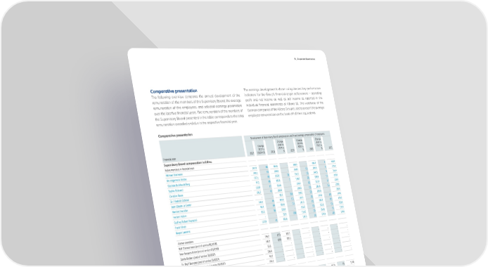 B _ Corporate Governance The earnings development is shown using the two key performance The following overview compares the annual development of the indicators for the Group’s financial target achievement – operating remuneration of the members of the Supervisory Board, the average profit and net income as well as net income as reported in the remuneration of the employees, and selected earnings parameters individual financial statements of Allianz SE. The workforce of the over the last five financial years. The remuneration of the members of German companies of the Allianz Group is used to present the average the Supervisory Board presented in the table corresponds to the total employee remuneration on the basis of full-time equivalents. remuneration awarded and due in the respective financial year. Comparative presentation Development of Supervisory Board compensation, profit and average compensation of employees Change Change Change Change 2018 to 2019 to 2020 to 2017 to 2019 in 2020 in 2021 in Financial year 2017 2018 in % 2018 % 2019 % 2020 % 2021 Supervisory Board compensation in € thou Active members in financial year Michael Diekmann 257.0 88 484.0 - 484.0 - 486.0 9 530.9 Jim Hagemann Snabe 194.5 38 268.5 - 268.5 (1) 266.5 4 276.0 Gabriele Burkhardt-Berg 137.1 48 202.8 20 243.5 (1) 240.5 9 261.4 Sophie Boissard 97.1 88 183.0 1 184.0 (3) 178.0 13 200.9 Christine Bosse 132.8 17 156.0 - 156.0 (2) 153.0 37 209.3 Dr. Friedrich Eichiner 192.7 47 283.0 - 284.0 (1) 281.0 (1) 278.0 Jean-Claude Le Goaër - - 83.5 150 209.0 (3) 203.0 - 203.0 Martina Grundler 145.3 26 183.0 (1) 182.0 (2) 179.0 (2) 176.0 Herbert Hainer 96.4 89 182.0 (1) 181.0 (1) 180.0 (2) 176.0 Godfrey Robert Hayward 83.0 88 156.0 - 156.0 (3) 152.0 (1) 150.0 Frank Kirsch - - 52.0 200 156.0 (1) 154.0 13 173.9 Jürgen Lawrenz 137.8 31 181.0 - 181.0 (1) 179.0 (2) 176.0 Former members Rolf Zimmermann (end of service 08/2018) 196.2 (17) 162.3 - - - - - - Jean-Jacques Cette (end of service 07/2018) 145.3 (28) 105.1 - - - - - - Dante Barban (end of service 05/2017) 53.0 - - - - - - - - Dr. Wulf Bernotat (end of service 05/2017) 106.4 - - - - - - - - Prof. Dr. Renate Köcher (end of service 05/2017) 52.2 - - - - - - - - Dr. Helmut Perlet (end of service 05/2017) 152.2 - - - - - - - - Profit development in € bn Operating profit 11.10 4 11.51 3 11.86 (9) 10.75 25 13.40 Net income attributable to shareholders 6.80 10 7.46 6 7.91 (14) 6.81 (3) 6.61 Net income acc. Allianz SE financial statement 3.67 46 5.36 (14) 4.60 - 4.61 16 5.35 Average employee compensation in € thou Average compensation based on full-time equivalent 85 (2) 83 4 86 (6) 81 4 84 Annual Report 2021 − Allianz Group 51