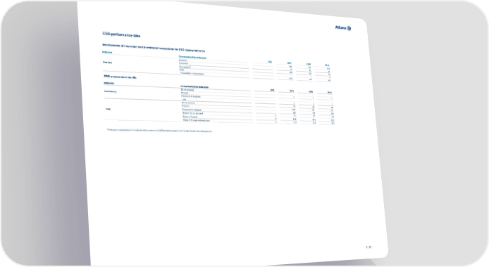 ESG performance data Assessments of insurance and investment transactions for ESG appropriateness Indicator Components/Sub-Indicators Unit 2021 2020 2019 Insurance 850 430 474 Investment 71 65 64 Overview Procurement1 526 101 58 Other - 1 6 Total number of assessments 1,447 597 602 ESG assessment results Indicator Components/Sub-Indicators Unit 2021 2020 2019 Do not proceed - - - Sex Industry Proceed 1 1 1 Proceed with mitigation - - - Total 1 1 1 Do not proceed 78 46 48 Proceed 1,167 361 321 Total Proceed with mitigation 202 190 233 Share of Do not proceed % 5.4 7.7 8.0 Share of Proceed % 80.6 60.5 53.3 Share of Proceed with mitigation % 14.0 31.8 38.7 1) Increase of procurement referrals driven by a new set of ESG questions as part of our Vendor Integrity Screening process. 5 / 21