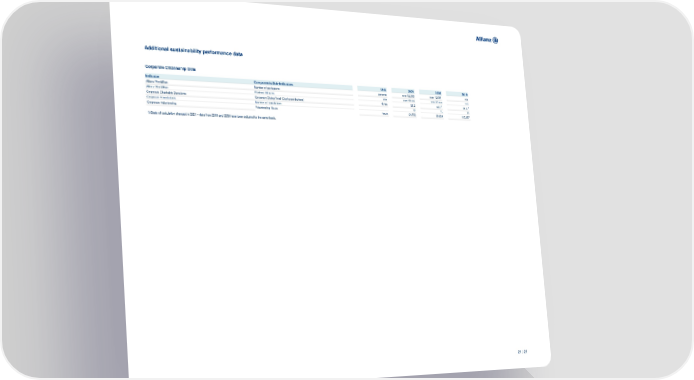 Additional sustainability performance data Corporate Citizenship Data Indicator Components/Sub-Indicators Unit 2021 2020 2019 Allianz WorldRun Number of particpants persons over 12,000 over 12,000 n/a Allianz WorldRun Workout Minutes min over 55 mn over 25 mn n/a Corporate Charitable Donations Corporate Giving Total (Cash contributions) € mn 28.2 1 1 43,5 21,5 Corporate Foundations Number of foundations 12 12 13 Corporate Volunteering Volunteering Hours hours 84,753 56,654 115,057 1) Basis of calculation changed in 2021 – data from 2019 and 2020 have been adjusted to the same basis. 21 / 21