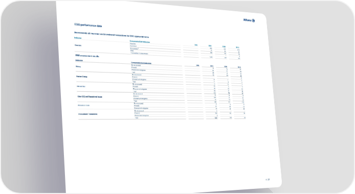 ESG performance data Assessments of insurance and investment transactions for ESG appropriateness Indicator Components/Sub-Indicators Unit 2021 2020 2019 Insurance 850 430 474 Investment 71 65 64 Overview Procurement1 526 101 58 Other - 1 6 Total number of assessments 1,447 597 602 ESG assessment results Indicator Components/Sub-Indicators Unit 2021 2020 2019 Do not proceed 9 12 13 Mining Proceed 26 21 19 Proceed with mitigation 26 34 63 Total 61 67 95 Do not proceed - - 2 Nuclear Energy Proceed 8 9 2 Proceed with mitigation 1 6 3 Total 9 15 7 Do not proceed 13 6 4 Oil and Gas Proceed 48 23 24 Proceed with mitigation 53 41 39 Total 114 70 67 Do not proceed 15 10 8 Other ESG and Reputational Issues Proceed 331 76 91 Proceed with mitigation 35 31 30 Total 381 117 129 Do not proceed 5 8 8 Percent of Total Proceed 81 60 53 Proceed with mitigation 14 32 39 Do not proceed 1 - - Procurement Transactions Proceed 521 101 58 Proceed with mitigation 3 - - Total 525 1 101 58 4 / 21