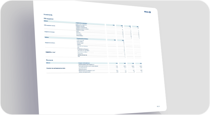 Investments ESG engagement Indicator Components/Sub-Indicators Unit 2021 2020 2019 Number of active engagements 61 68 49 Engagement outcomes ESG engagement overview Engagement closed sucessfully 21 3 4 Engagement closed with restrictions 2 8 1 Engagement on-going 38 57 44 Europe 15 17 18 Engagements by Region Asia Pacific 22 25 12 North America 17 20 15 Emerging Markets 7 6 4 Indicator Components/Sub-Indicators Unit 2021 Oil, Gas and Energy 34 Metals and Mining 7 Engagements by Sector Steel and Cement 7 Chemicals 3 Construction and Engineering 5 Other 5 CO Emissions and Mangement 48 2 Health, Safety and Human Rights 17 Engagements by Topic1 Toxic Emissions and Waste 6 Product Safety 2 Biodiversity and Land Use 4 Other 3 Divestments Indicator Components/Sub-Indicators Unit 2021 2020 2019 Cumulative divestment since November 2015 Fixed income investments to run-off or already disposed € mn 5,983.0 5,983.0 5,942.7 Divestment from coal-based business models Listed equities divested € mn 347.5 347.5 340.5 Additional divestments Additional fixed income investments to run-off € mn 0.0 2 40.3 236.0 Additonal listed equities divested € mn 0.0 2 7.0 14.0 15 / 21