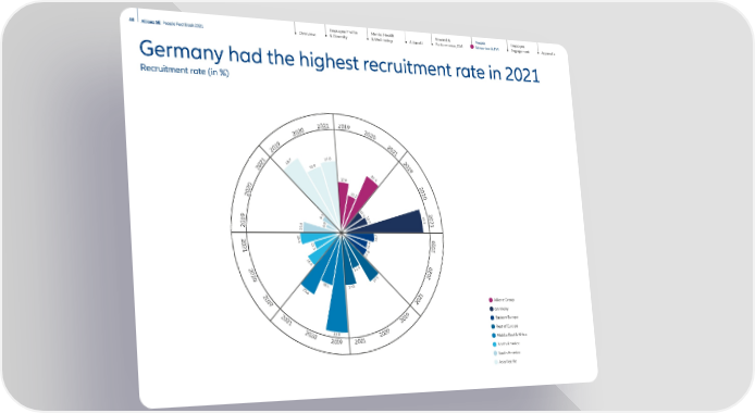 Employee Profile & Diversity Mental Health & Well-being AllianzU Reward & Performance, GM Employee Engagement Appendix 40 Allianz SE People Fact Book 2021 Overview People Attraction & TM 1 3 . 2 1 7 . 4 2 2 . 4 1 0 . 0 1 0 . 9 3 2 . 3 1 2 . 4 1 9 . 0 1 7 . 5 3 3 . 0 1 8 . 1 2 3 . 6 1 1 . 1 1 5 . 4 1 5 . 6 1 4 . 4 8 . 1 2 8 . 7 2 3 . 0 2 4 . 0 1 0 . 4 1 2 . 7 1 1 . 0 6 . 0 Germany had the highest recruitment rate in 2021 Recruitment rate (in %) Allianz Group Germany Eastern Europe Rest of Europe Middle East & Africa North America South America Asia Pacific 2 0 1 9 2 0 1 9 2 0 2 1 2 0 2 0 2 0 1 9 2 0 1 9 2 0 2 1 2 0 2 0 2 0 2 1 2 0 1 9 2 0 1 9 2 0 2 0 2 0 2 1 2 0 2 0 2 0 2 1 2 0 2 0 2 0 2 1 2 0 1 9 2 0 2 1 2 0 2 0 2 0 1 9 2 0 2 0 2 0 2 0 2 0 2 1