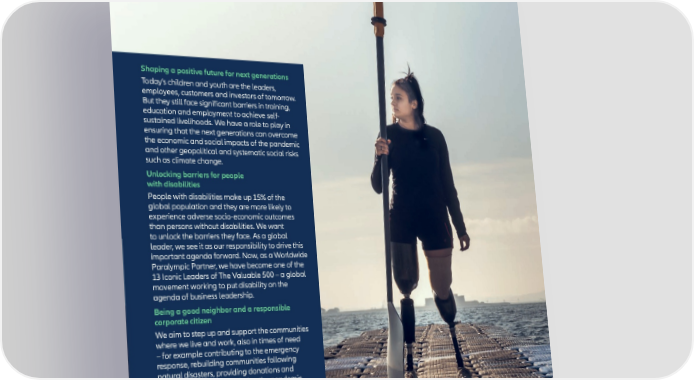 We are deeply aware that our actions have the potential to influence the future well-being of next generations. Our decisions today play an integral part in determining this future. We continue to evolve our Corporate Citizenship Strategy to deliver our company purpose, ‘We secure your future’. We have strengthened our approach by focusing on two key beneficiary groups – next generations (children and youth) and people with disabilities. 05 What is your Corporate Citizenship Strategy? € . mn donated to social impact initiatives Increasing our societal impact Shaping a positive future for next generations Today’s children and youth are the leaders, employees, customers and investors of tomorrow. But they still face significant barriers in training, education and employment to achieve self- sustained livelihoods. We have a role to play in ensuring that the next generations can overcome the economic and social impacts of the pandemic and other geopolitical and systematic social risks such as climate change. Unlocking barriers for people with disabilities People with disabilities make up 15% of the global population and they are more likely to experience adverse socio-economic outcomes than persons without disabilities. We want to unlock the barriers they face. As a global leader, we see it as our responsibility to drive this important agenda forward. Now, as a Worldwide Paralympic Partner, we have become one of the 13 Iconic Leaders of The Valuable 500 – a global movement working to put disability on the agenda of business leadership. Being a good neighbor and a responsible corporate citizen We aim to step up and support the communities where we live and work, also in times of need – for example contributing to the emergency response, rebuilding communities following natural disasters, providing donations and employee volunteering during the pandemic and the humanitarian crisis in Ukraine. Employees volunteered for more than , hours Read more about our Corporate Citizenship Strategy. Allianz Sustainability Fact Book Allianz Sustainability Fact Book