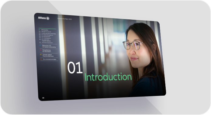 Sustainability Report 2021 01 Introduction 01.1 Message from the CEO 01.2 Company description and strategy 01.3 Our sustainability approach 01.4 Our social approach 01.5 Our climate approach 01.6 Our sustainability integration approach 01.7 2021 Reporting highlights 02 Measuring and managing sustainability 03 Strengthening our foundation 04 Climate-related financial disclosure 05 Our universal principles 01 Introduction 04