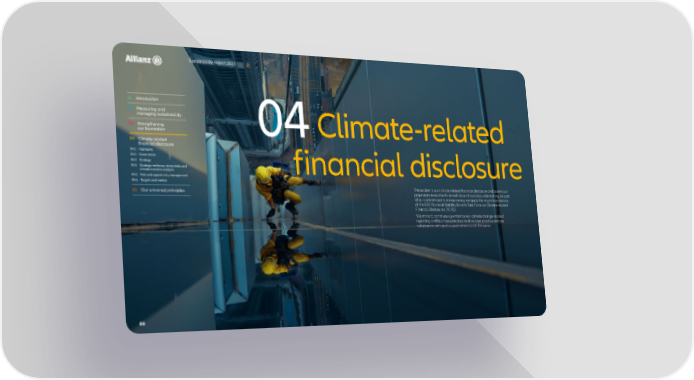 Sustainability Report 2021 01 Introduction 02 Measuring and managing sustainability 03 Strengthening our foundation Climate-related 04 04 Climate-related financial disclosure 04.1 Highlights 04.2 Governance 04.3 Strategy 04.4 Strategy resilience, stress-tests and climate scenario analysis financial disclosure 04.5 Risk and opportunity management 04.6 Targets and metrics 05 Our universal principles This section is our climate-related financial disclosure and covers our proprietary investments as well as our insurance underwriting. As part of our commitment to transparency, we apply the recommendations of the G20 Financial Stability Board’s Task Force on Climate-related Financial Disclosures (TCFD). We strive to continuously enhance our climate change-related reporting and business practices to drive best practice and we collaborate with and support others to do the same. 66