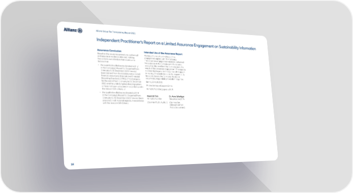 Assurance Conclusion Based on the assurance procedures performed and assurance evidence obtained, nothing has come to our attention that causes us to believe that: • the quantitative disclosures denoted with ‘√’ in the Company’s Report for the period from 1 January to 31 December 2021 have not been derived from the statutory consolidated financial statements (International Financial Reporting Standards (IFRS)) of the Company for the period from 1 January to 31 December 2021 and the underlying bookkeeping system or have not been calculated in accordance with the relevant GRI-criteria, or • the qualitative disclosures denoted with ‘#’ in the Company’s Report for the period from 1 January to 31 December 2021 have not been prepared, in all material aspects, in accordance with the relevant GRI-Criteria. Intended Use of the Assurance Report We issue this report on the basis of the engagement agreed with the Company. The assurance engagement has been performed for purposes of the Company and the report is solely intended to inform the Company as to the results of the assurance engagement. The report is not intended to provide third parties with support in making (financial) decisions. Our responsibility lies solely toward the Company. We do not assume any responsibility towards third parties. Berlin, 22 April 2022 PricewaterhouseCoopers GmbH Wirtschaftsprüfungsgesellschaft Hendrik Fink Dr. Arne Schnitger Wirtschaftsprüfer Steuerberater/CPA (German Public Auditor) (German Tax Advisor/Certified Public Accountant) Independent Practitioner’s Report on a Limited Assurance Engagement on Sustainability Information Allianz Group Tax Transparency Report 2021 14